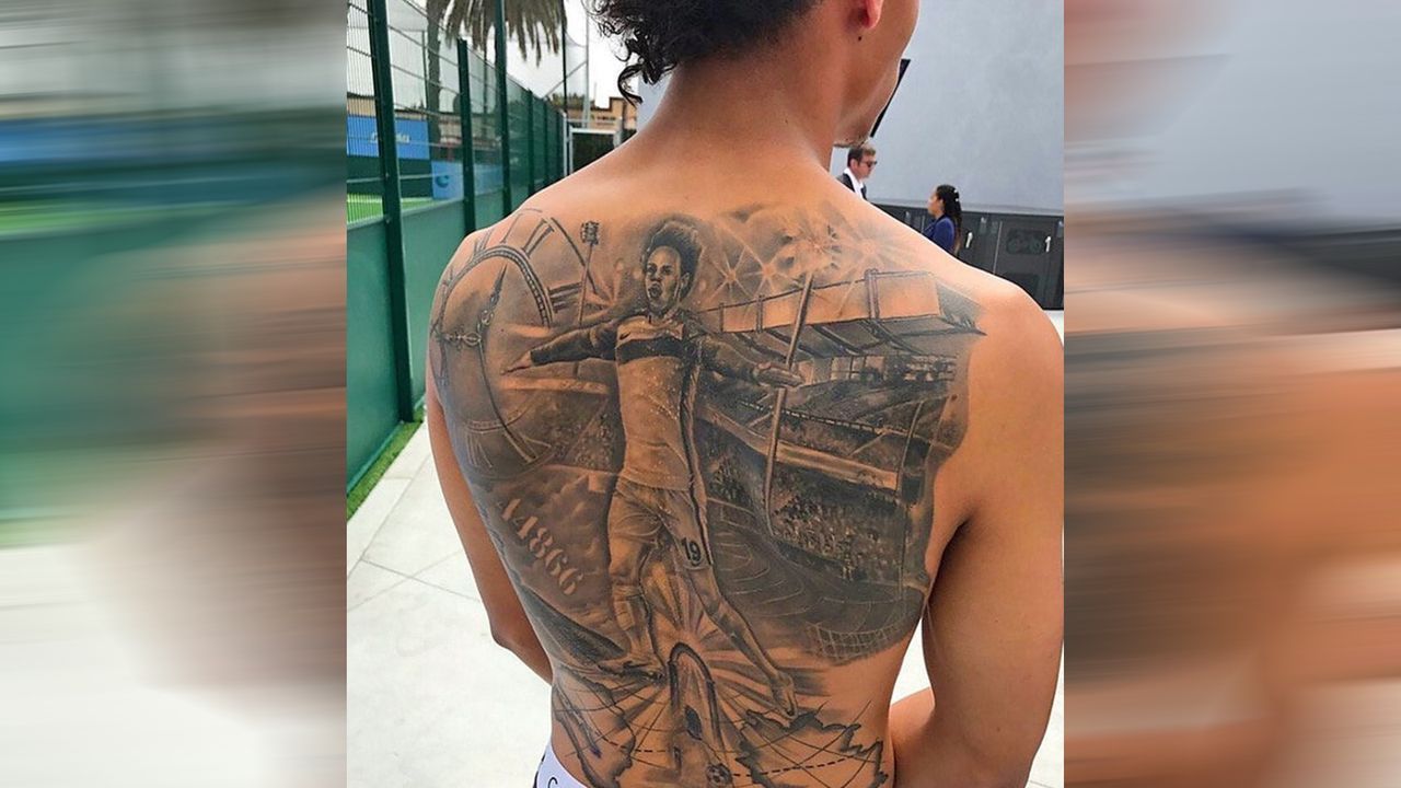 In der sommerpause verwandelte er seinen rücken in eine leinwand und ließ sich ein tattoo stechen. The backside of the young footballer has a tattoo … leroy sane's tattoo. The backside of the young footballer has a tattoo which shows the german player himself. Leroy sané had a successful first season with manchester city, but was it memorable enough to let's hope sané got the tattoo after the second leg and not as a premature celebration after the first. Man citys leroy sane shows off back tattoo of himself.